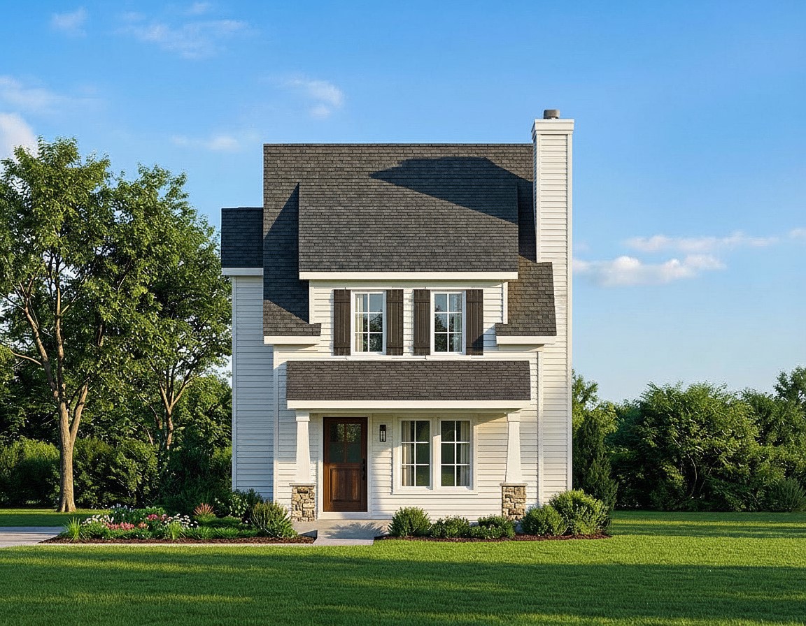 Unique, narrow lot, two story small house plan.