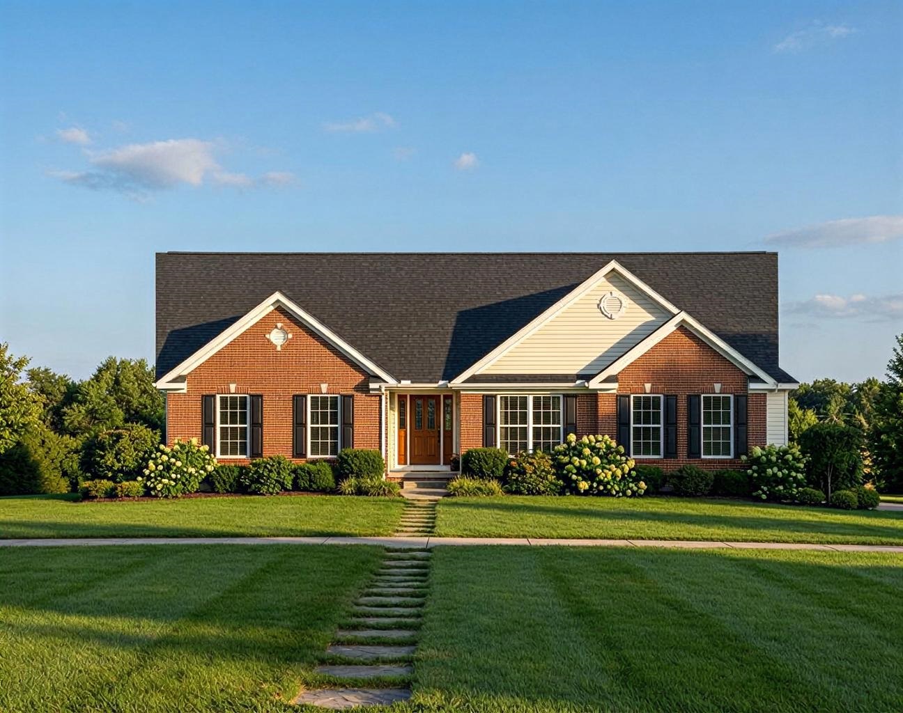 Traditional ranch model with open floor plan and a side entry, three car garage.